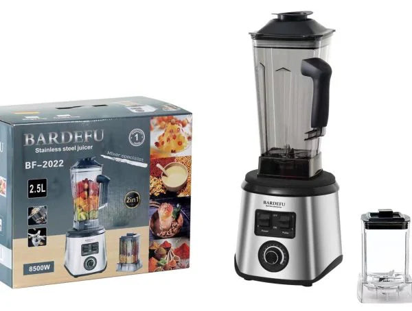 The Bardefu Blender BF:2022 is a versatile and powerful appliance, perfect for blending smoothies, soups, and shakes with ease. Featuring a 700W motor and stainless steel blades, this blender is designed to tackle tough ingredients and provide smooth, consistent results. With a spacious 1.5-liter jar, it can handle large servings for your family or guests. The sleek design and easy-to-use controls make it an excellent addition to any kitchen. Whether you're making a quick smoothie or preparing a meal, the Bardefu Blender BF:2022 ensures efficiency and reliability.